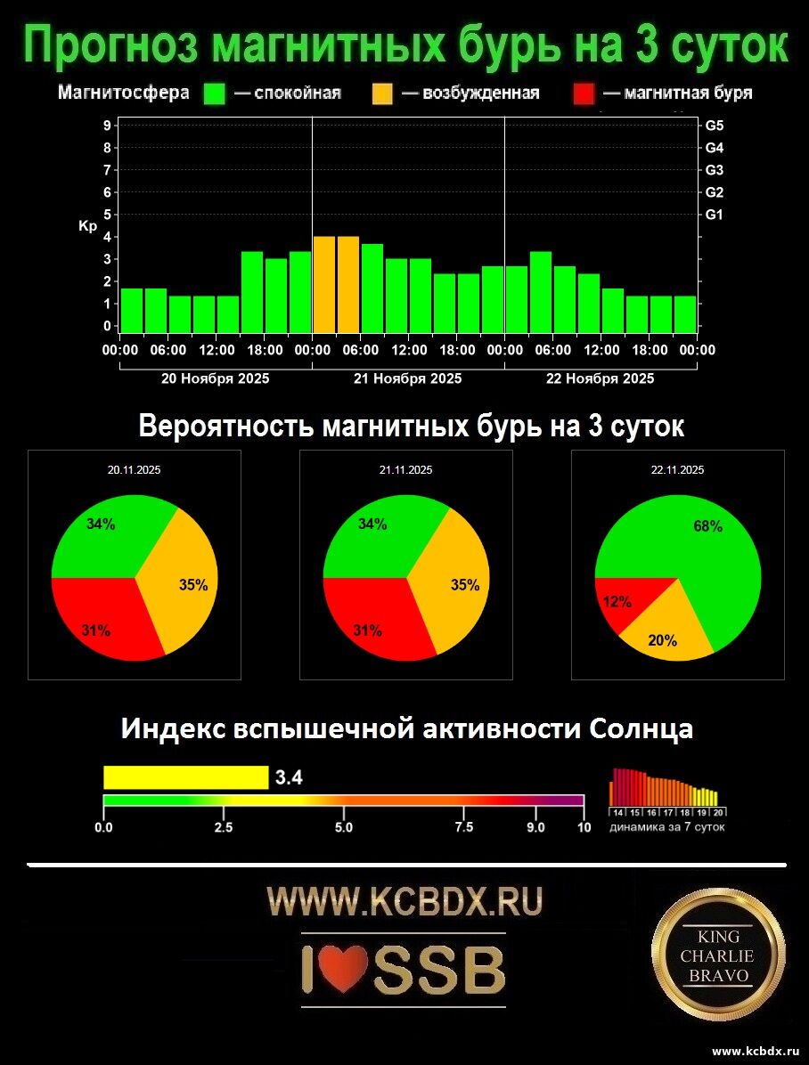 Для определения возмущенности магнитного поля Земли используется так называемый К-индекс. Это отклонение магнитного поля от нормы по трехчасовым интервалам. К-индекс определяется в диапазоне от 0 до 9. Чем больше значение, тем более возмущенным является магнитное поле Земли. Значения больше 4 соответствуют магнитным бурям.