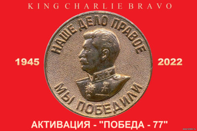 | Официальные бумажные QSL карточки Международного клуба "КING CHARLIE BRAVO". Мировая Активация "Победа - 77". QSL карточки изготовлены в типографии ограниченным тиражом.