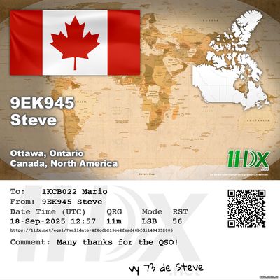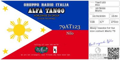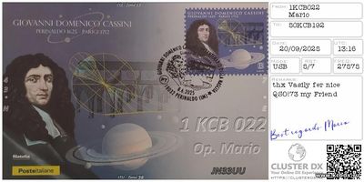 | Спасибо, Василий, за отличное QSO. Знаю, были помехи, но мы справились. Крепко обнимаю, друг. 73 Марио -1 KCB 022